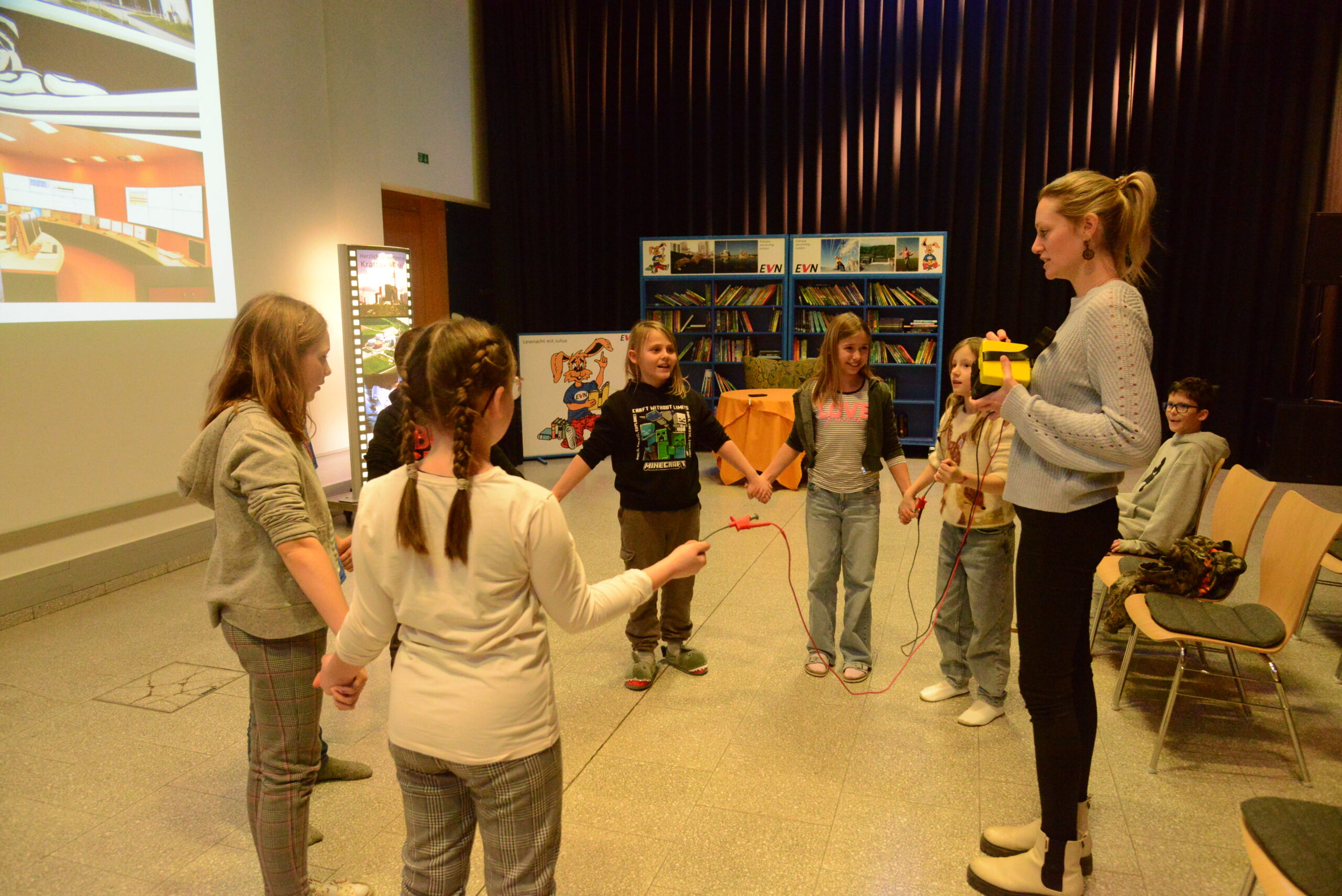 Am 10. Februar war es endlich so weit: Die Kinder der vierten Klasse verbrachten eine erlebnisreiche, spannende und aufregende Lesenacht im Kraftwerk Theiß. Nach einem interessanten Vortrag über Energie durften wir uns bei einem Abendessen stärken. Anschließend erfolgte die Nachtwanderung mit Taschenlampen zur 43 m hohen Aussichtsplattform mit Blick über das Tullnerfeld bis nach Krems sowie die Kinderdisco mit Kindersekt und Popcorn. Vor dem Einschlafen durften die Kinder noch in ihrem Lieblingsbuch lesen. Nach der Übernachtung in Schlafsäcken und guten Frühstück fand ein Rundgang durch das Kraftwerk statt. Am Vormittag konnten die Kinder auch noch zahlreiche spannende Experimente zum Thema Strom durchführen und ein wenig Zeit mit niedlichen Kaninchen verbringen. Die Lesenacht war für die SchülerInnen ein unvergessliches Erlebnis!