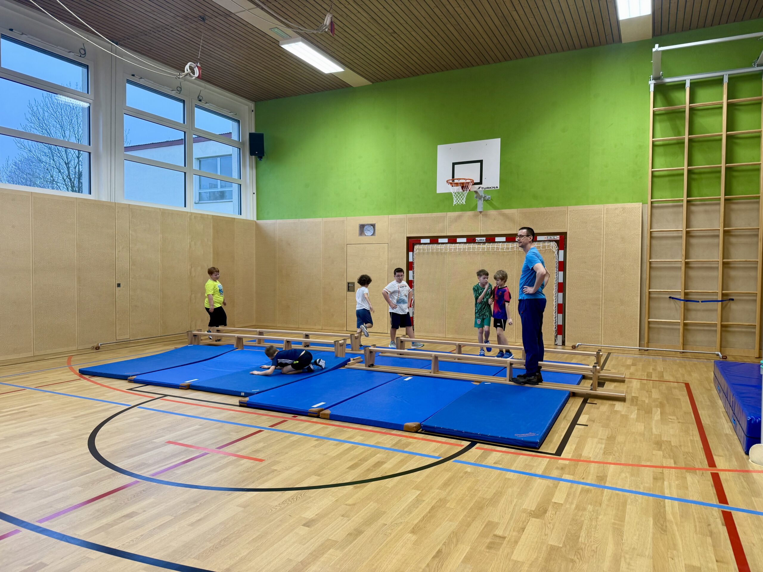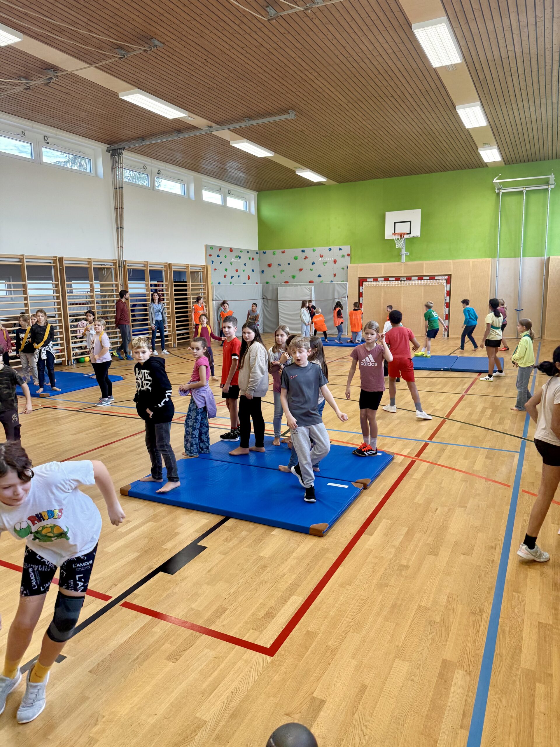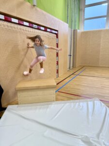 Im Sportunterricht hatten die SchülerInnen die Möglichkeit, etwas ganz Neues auszuprobieren: Freerunning und Parkour! Unter der fachkundigen Anleitung von Herrn Bauer lernten die Kinder, wie sie sich mit Kreativität und Geschick durch den urbanen Raum bewegen können – ganz nach dem Motto: „Überwinde Hindernisse, anstatt sie zu umgehen.“ Die Kinder hatten in dieser Unterrichtsstunde großen Spaß.