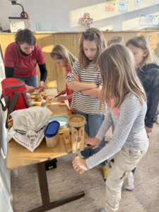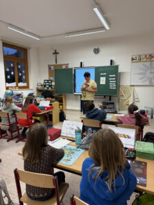 Mitte Februar kam Fr. Scharinger von den Seminarbäuerinnen zu uns an die Schule und nahm uns mit auf eine lehrreiche Reise „vom Bauernhof zur Milch“. Während ihres Besuchs erklärte sie anschaulich, wie die Milch von der Kuh bis zum fertigen Produkt auf unseren Tischen gelangt. Sie erzählte nicht nur von der Haltung der Tiere und den täglichen Aufgaben auf einem Bauernhof, sondern auch von den modernen Technologien, die in der Milchproduktion zum Einsatz kommen. Die SchülerInnen hatten die Gelegenheit, viele Fragen zu stellen und erfuhren, wie wichtig es ist, beim Konsum von Milch und Milchprodukten auf Herkunft und Qualität zu achten. Als Highlight durfte jedes Kind aus Schlagobers Butter schütteln und sich als Kuhmelker ausprobieren.